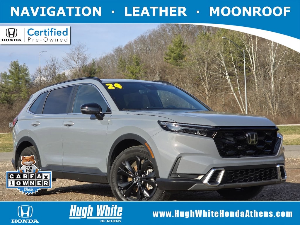 Honda Certified CARFAX 1-Owner, Free CARFAX report! DESIRABLE FEATURES: This popular Honda Certified 2024 CR-V Hybrid Sport Touring features: LEATHER, MOONROOF, NAVIGATION, AWD, REMOTE START, HEATED-SEATS, LANE-DEPARTURE WARNING, TECH PKG, PREMIUM AUDIO, HEATED-STEERING WHEEL, BLIND-SPOT MONITORING, HANDS-FREE LIFTGATE, BLUETOOTH, BACKUP CAMERA, POWER LIFT-GATE, MULTI-ZONE AC, ALLOY-WHEELS, WiFi Hotspot, Push-Button Start, SiriusXM, Remote entry, and is available today at our Athens, OH Honda dealership near you.This awd Certified Pre Owned 2024 CR-V Hybrid Sport Touring features a Urban Gray Pearl exterior with a Black Leather interior and has only 13,241 miles.