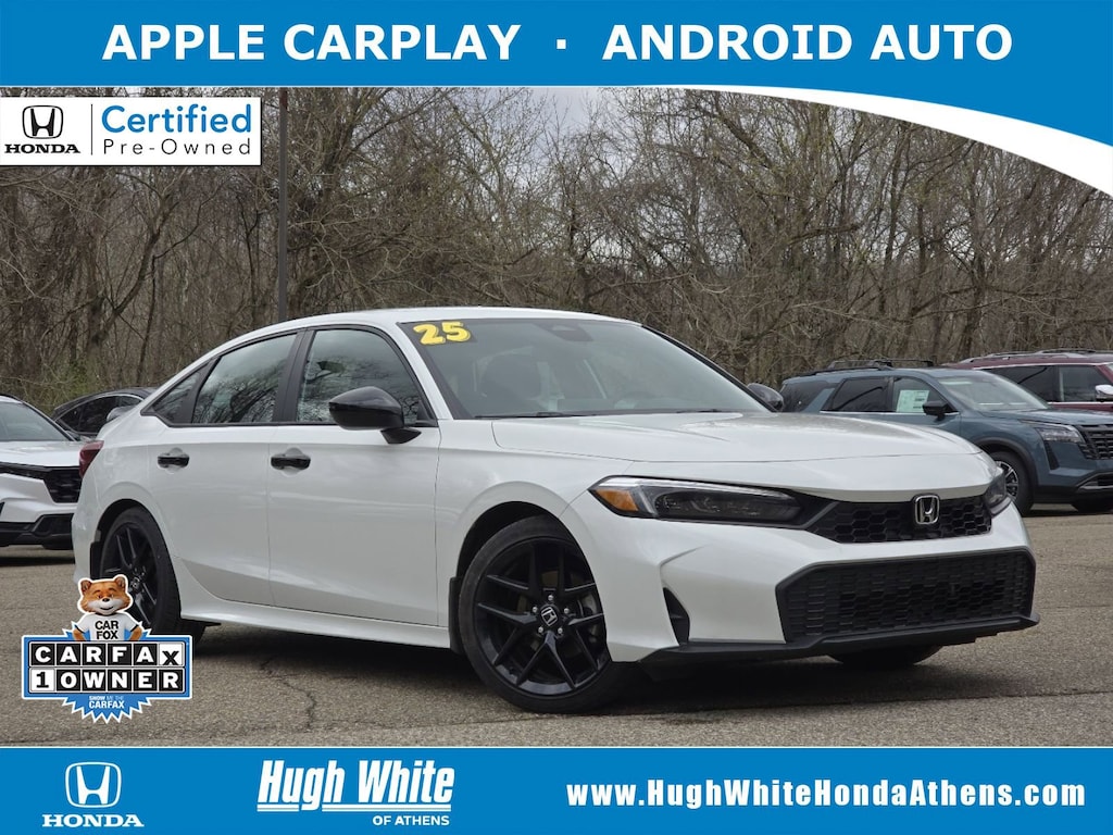 Honda Certified CARFAX 1-Owner, Free CARFAX report! DESIRABLE FEATURES: This popular Honda Certified 2025 Civic Sedan Sport features: APPLE CARPLAY, REMOTE START, ANDROID AUTO, TECH PKG, LANE-DEPARTURE WARNING, BLUETOOTH, BLIND-SPOT MONITORING, BACKUP CAMERA, Push-Button Start, Remote entry, and is available today at our Athens, OH Honda dealership near you.HondaTrue Certified: With this 2025 Honda Certified Civic Sedan Sport, you have far more than just a used vehicle. You have confidence, pride and a vehicle that you can trust. You're Honda Certified Civic Sedan can be counted on to go the distance with higher resale value.