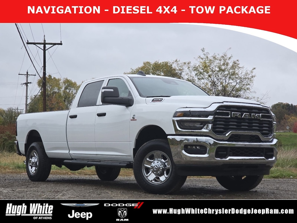 DESIRABLE FEATURES: NAVIGATION, APPLE CARPLAY, TRAILER BRAKE CONTROLS, TECH PKG, 4X4, ANDROID AUTO, TOW PKG, KEYLESS-START, DIESEL, BACKUP CAMERA, BLUETOOTH, RUNNING BOARDS, FOG LAMPS, WiFi Hotspot, Remote entry, SiriusXM. Your new 2025 Ram 3500 Tradesman 4x4 Crew Cab 8' Box is one of 4 other models like this in stock Athens drivers will find available to test drive at our new vehicle showroom in Athens, OH. This Ram 3500 is perfect for any ones truck needs in our neighboring communities of Athens, OH.