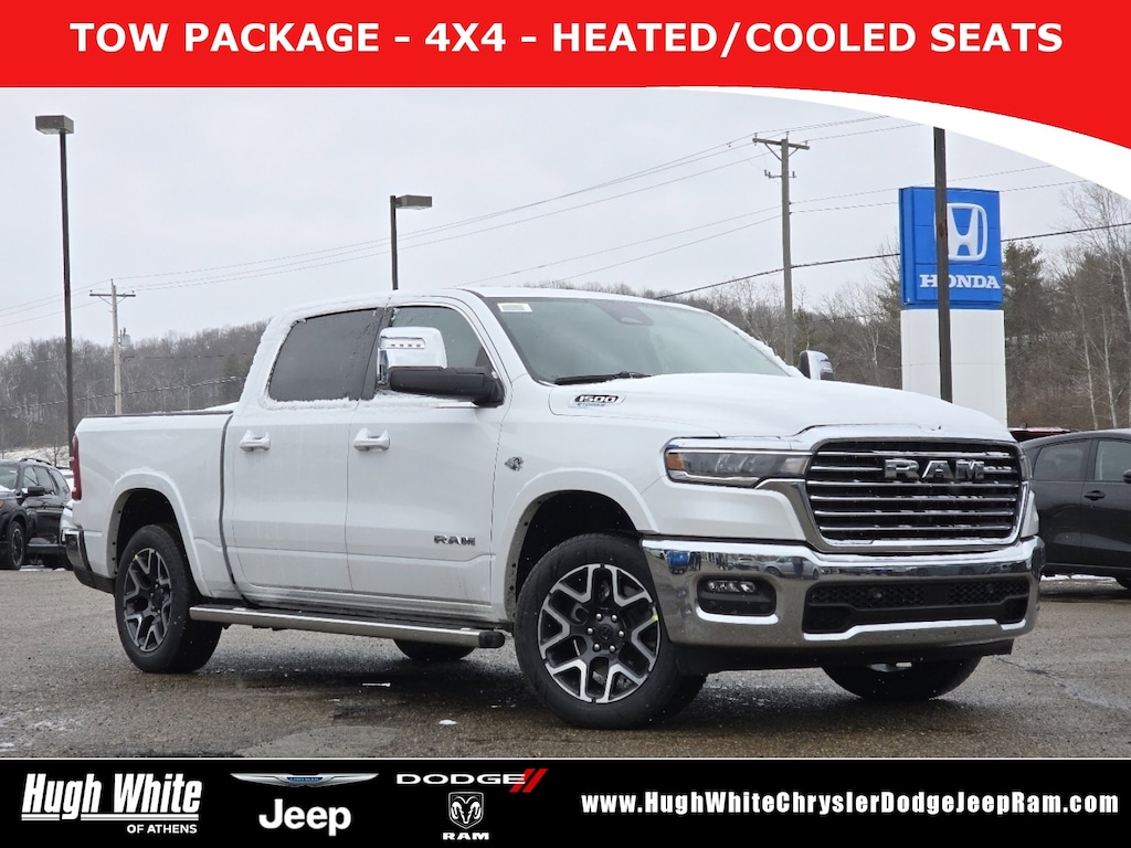 Our New Chrysler Dodge Jeep RAM Dealership in Athens, OH: Call Hugh White Chrysler, Dodge, Jeep & Ram today at (740) 594-8555 TO SCHEDULE YOUR TEST DRIVE of this 2026 Ram 1500 Laramie 4x4 Crew Cab 5'7" Box! Hugh White Chrysler, Dodge, Jeep & Ram serves Athens, OH. You can also visit us at, 250 Athens Road. Athens, OH 45701 to check it out in person!