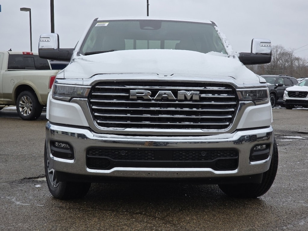 DESIRABLE FEATURES: APPLE CARPLAY, NAVIGATION, LEATHER TRIM SEATS, TRAILER BRAKES, HEATED-SEATS, LANE-DEPARTURE WARNING, TECH PKG, HEATED-REAR SEATS, ANDROID AUTO, 4X4, REMOTE START, COOLED SEATS, PREMIUM AUDIO, TOW PKG, HEATED-STEERING WHEEL, WIRELESS PHONE CHARGING, BLUETOOTH, RUNNING BOARDS, BACKUP CAMERA, BLIND-SPOT MONITORING, POWER LIFT-GATE, BACKUP-SENSORS, MULTI-ZONE AC, FOG LAMPS, ALLOY-WHEELS, WiFi Hotspot, Push-Button Start, Remote entry, SiriusXM, usb. Your new 2026 Ram 1500 Laramie 4x4 Crew Cab 5'7" Box is one of 12 other models like this in stock Athens drivers will find available to test drive at our new vehicle showroom in Athens, OH. This Ram 1500 is perfect for any ones truck needs in our neighboring communities of Athens, OH.