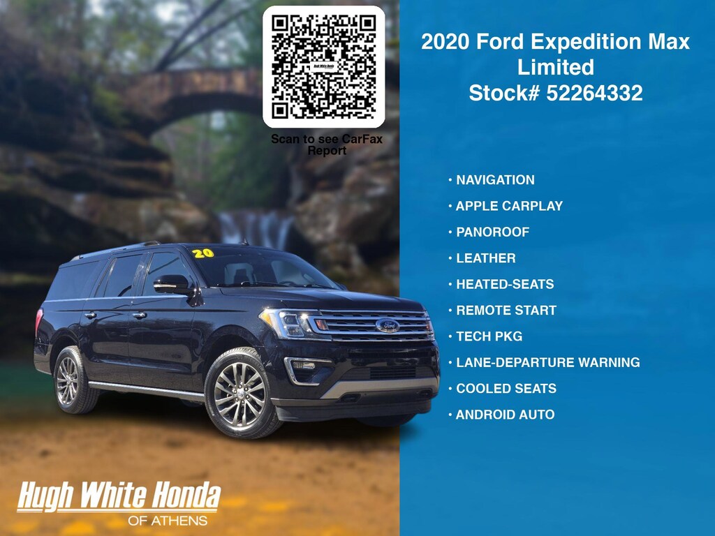 Our Car Dealership in Athens, OH: Call Hugh White Athens today at (844) 859-8630 TO SCHEDULE YOUR TEST DRIVE of this 2020 Ford Expedition Max Limited. You can also visit us at 250 Columbus Road. Athens, OH 45701 to check it out in person! Our Hugh White Athens Used car dealership only sells used cars Athens, OH buyers can trust for safety and worry free driving.
