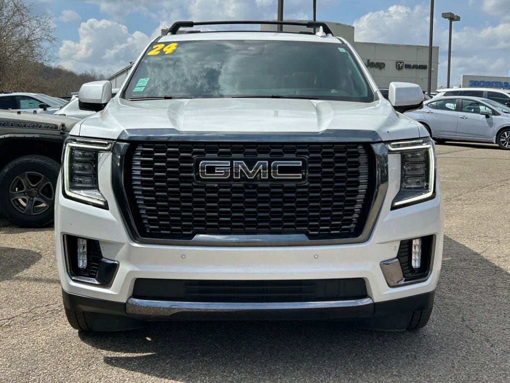 2024 GMC Yukon Denali Ultimate White Frost Tricoat CARFAX One-Owner. Clean CARFAX. 4WD, 18 Speakers, 3rd row seats: split-bench, Advanced Security Package, Advanced Technology Package, Air Conditioning, Auto-leveling suspension, Automatic temperature control, Bose Performance Series Sound System w/18 Speakers, Dual-Pane Panoramic Power Sunroof, Enhanced Automatic Parking Assist, Extra Capacity Cooling System, Front dual zone A/C, Front fog lights, Fully automatic headlights, Hands-Free Power Programmable Rear Liftgate, Heads-Up Display, Heated 2nd Row Outboard Position Seats, Heated door mirrors, Heated Driver & Front Passenger Seats, Inside Rearview Auto-Dimming Rear Camera Mirror, Max Trailering Package, Memory seat, Navigation System, Power driver seat, Power Liftgate, Power moonroof, Power steering, Power windows, Rear air conditioning, Rear Camera Mirror Washer, Rear window defroster, Remote keyless entry, Reverse Automatic Braking, Steering wheel memory, Steering wheel mounted audio controls, Turn signal indicator mirrors, Wheel Locks (Set of 4) (LPO), Wheels: 22" 7-Spoke Ultra-Bright Machined.