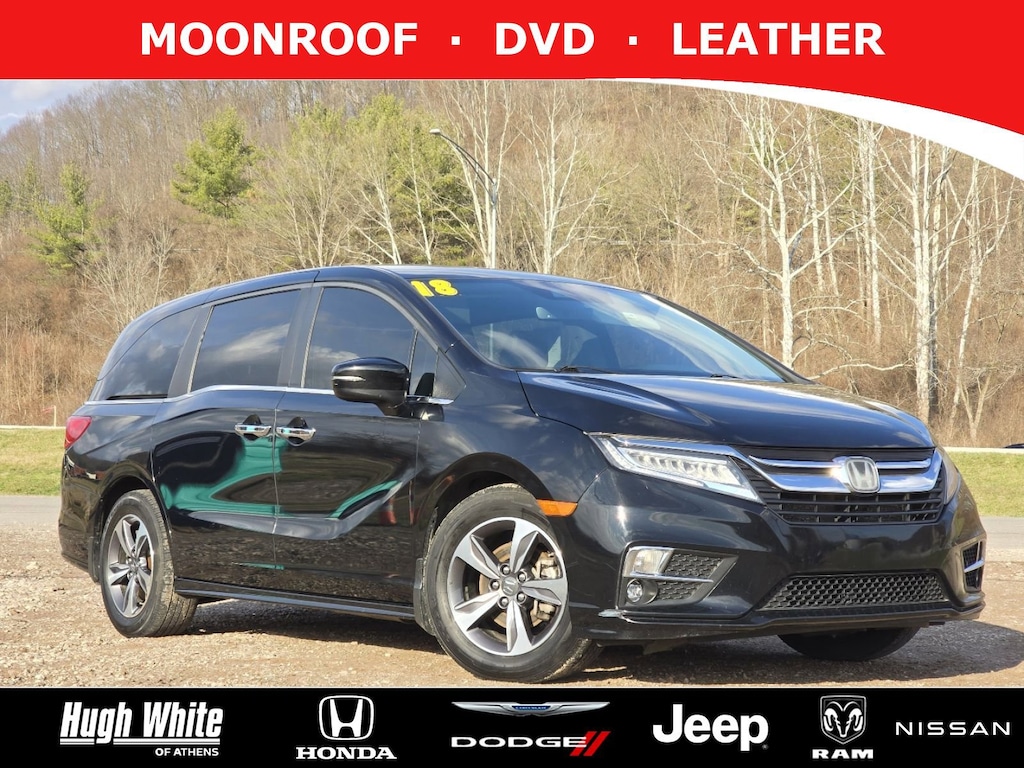 Free CARFAX report! DESIRABLE FEATURES: MOONROOF, DVD, LEATHER, NAVIGATION, APPLE CARPLAY, LANE-DEPARTURE WARNING, TECH PKG, ANDROID AUTO, REMOTE START, HEATED-SEATS, 3RD ROW SEAT, BLUETOOTH, BLIND-SPOT MONITORING, HANDS-FREE LIFTGATE, BACKUP CAMERA, POWER LIFT-GATE, POWER SLIDING DOORS, FOG LAMPS, MULTI-ZONE AC, HOMELINK, ALLOY-WHEELS, WiFi Hotspot, Push-Button Start, SiriusXM, Remote entry. Your 2018 Honda Odyssey Touring is perfect for daily work or weekend road trips to our neighboring communities of Athens.