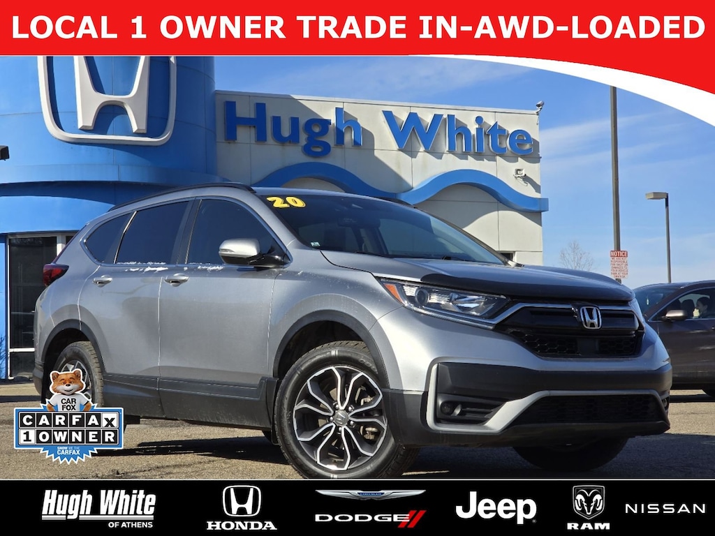 CARFAX VERIFIED 1-OWNER. Free CARFAX report! DESIRABLE FEATURES: * BOUGHT & SERVICED HERE *, * CARFAX 1-OWNER *, * LOCAL 1-OWNER *, * LOCAL-TRADE-IN *, LEATHER, SOLD HERE NEW, APPLE CARPLAY, AWD, MOONROOF, REMOTE START, LANE-DEPARTURE WARNING, TECH PKG, ANDROID AUTO, HEATED-SEATS, KEYLESS-START, TURBO, HANDS-FREE LIFTGATE, BLUETOOTH, POWER LIFT-GATE, BACKUP CAMERA, BLIND-SPOT MONITORING, HOMELINK, FOG LAMPS, ALLOY-WHEELS, MULTI-ZONE AC, Remote entry, SiriusXM. Your 2020 Honda CR-V EX-L is perfect for daily work or weekend road trips to our neighboring communities of Athens.
