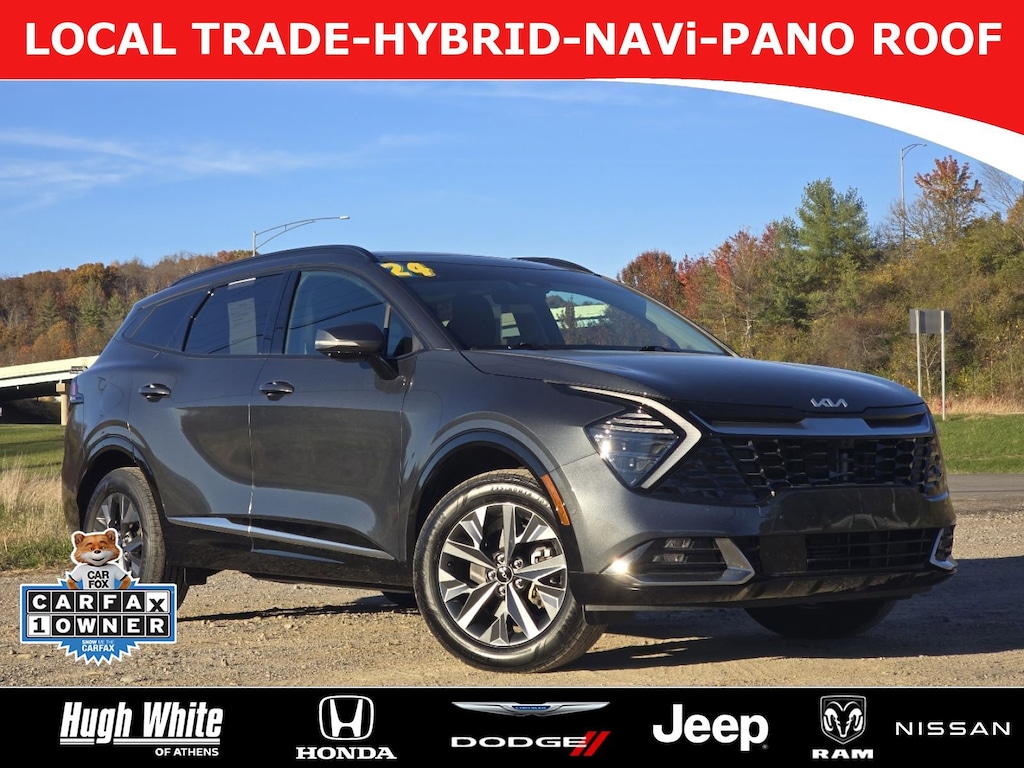 CARFAX VERIFIED 1-OWNER. Free CARFAX report! DESIRABLE FEATURES: * CARFAX 1-OWNER *, * LOCAL 1-OWNER *, * LOCAL-TRADE-IN *, PANOROOF, 360 CAMERA, NAVIGATION, AWD, APPLE CARPLAY, HYBRID, MOONROOF, LEATHER, CLEAN CARFAX, COOLED SEATS, TECH PKG, ANDROID AUTO, HEATED-SEATS, LANE-DEPARTURE WARNING, KEYLESS-START, TURBO, PREMIUM AUDIO, HEATED-STEERING WHEEL, BACKUP CAMERA, BLUETOOTH, POWER LIFT-GATE, BLIND-SPOT MONITORING, HANDS-FREE LIFTGATE, FOG LAMPS, BACKUP-SENSORS, MULTI-ZONE AC, Remote entry, SiriusXM. Your 2024 Kia Sportage Hybrid SX-Prestige AWD is perfect for daily work or weekend road trips to our neighboring communities of Athens.Hugh White Athens also offers extended vehicle service contracts so our Athens, OH area drivers enjoy a worry free used car, SUV or van ownership experience.