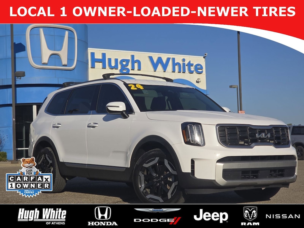 CARFAX VERIFIED 1-OWNER. Free CARFAX report! DESIRABLE FEATURES: * LOCAL-TRADE-IN *, * LOCAL 1-OWNER *, * CARFAX 1-OWNER *, NEWER TIRES, LEATHER, CLEAN CARFAX, APPLE CARPLAY, AWD, NAVIGATION, ANDROID AUTO, LANE-DEPARTURE WARNING, TECH PKG, HEATED-SEATS, REMOTE START, KEYLESS-START, 3RD ROW SEAT, BLIND-SPOT MONITORING, BACKUP CAMERA, BLUETOOTH, MULTI-ZONE AC, BACKUP-SENSORS, WiFi Hotspot, 2nd ROW CAPTAINS, SiriusXM, Remote entry. Your 2024 Kia Telluride S is perfect for daily work or weekend road trips to our neighboring communities of Athens.Hugh White Athens also offers extended vehicle service contracts so our Athens, OH area drivers enjoy a worry free used car, SUV or van ownership experience.
